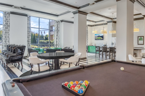 Our resident lounge is designed with you in mind! Take advantage of our entertaining kitchen, poker tables, and billiards to host your family and friends. This space is rentable for private parties.
