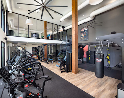 Two-story 24-hour fitness center with yoga & barre studio